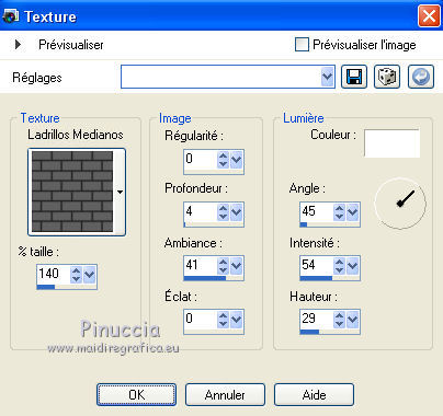 31. Effets>Effets de textures>Texture - Sélectionner la texture Ladrillos Medianos avec ces paramètres.