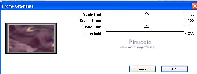 6. Effets>Modules Externes>Filter Factory Gallery R - Frame Gradients, par défaut.