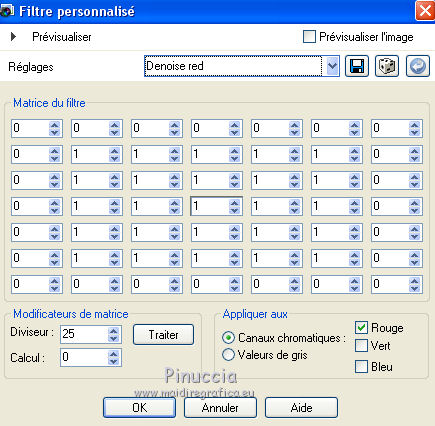 22. Effets>Filtre personnalisé, sélectionner le preset Denoise red et ok.