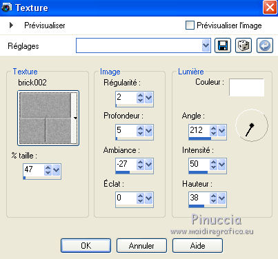 32. Effets>Effets de textures>Texture - Sélectionner la texture brick 002 avec ces paramètres.