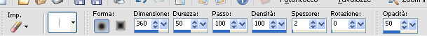 16. Attiva lo strumento Gomma con i seguenti settaggi.