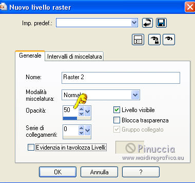 24. Livelli>Nuovo livello raster - approfitta della finestra che si apre per abbassare l'opacità del livello al 50%.