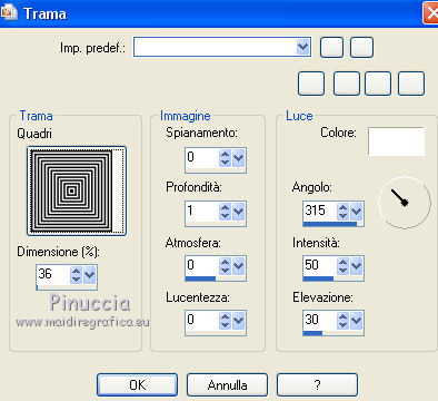 12. Effetti>Effetti di trama>Trama - seleziona la trama Quadri con i seguenti settaggi.
