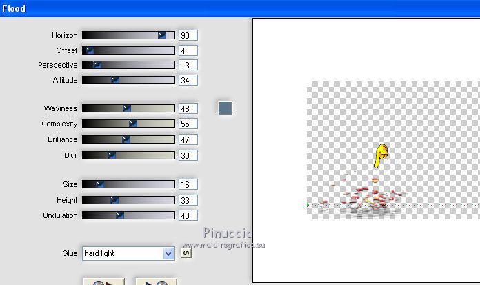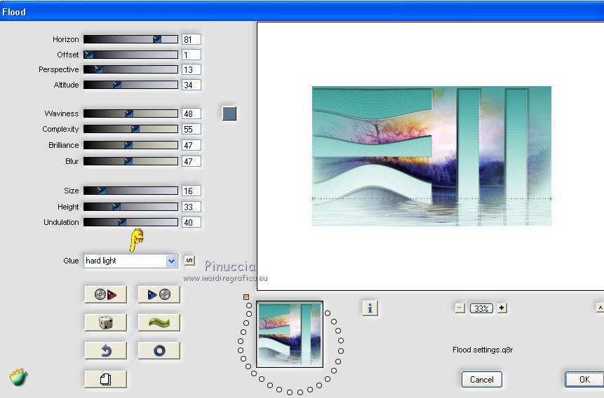 Enfin j'ai appliqué le Filtre Flood, en adaptant les paramètres en fonction du calque,