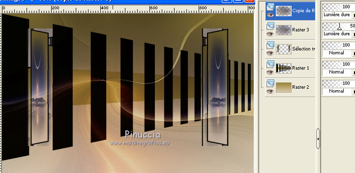 Placer le calque en mode Lumière dure et réduire l'opacité à 50%.