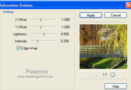22. Effetti>Plugins>FM Tile Tools - Saturation Emboss, con i settaggi standard.