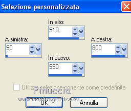 modalità Scala ![]() e imposta Posizione X: 50,00 e Fattore di scala X: 105,00. ![]() 14. Attiva il livello Raster 1. Effetti>Plugins>Filters Unlimited 2.0 - VM Texture - Stardust. ![]() 15. Effetti>Effetti di riflesso>Specchio rotante. ![]() 16. Attiva il livello superiore. Attiva lo strumento Selezione ![]() (non importa il tipo di selezione impostato, perchè con la selezione personalizzata si ottiene sempre un rettangolo) clicca sull'icona Selezione personalizzata ![]() e imposta i seguenti settaggi. ![]() 17. Livelli>Nuovo livello raster. Imposta il colore di primo piano con #3c3232, e il colore di sfondo con #ffd6dc. ![]() Passa il colore di primo piano a Gradiente di primo piano/sfondo, stile Lineare. ![]() Riempi la selezione con il gradiente.Selezione>Deseleziona. Livelli>Unisci>Unisci giù. Effetti>Effetti 3D>Sfalsa ombra, colore #000000. ![]() Livelli>Unisci>Unisci visibile. 18. Apri il tube della donna e vai a Modifica>Copia. Torna al tuo lavoro e vai a Modifica>Incolla come nuovo livello. Posiziona il tube a tuo piacimento, o vedi il mio esempio.19. Apri il tube deco e vai a Modifica>Copia. Torna al tuo lavoro e vai a Modifica>Incolla come nuovo livello. Spostalo in alto a sinistra.Livelli>Duplica. Immagine>Rifletti. 20. Immagine>Aggiungi bordatura, 2 pixels, simmetriche, colore scuro #4c2128. Firma il tuo lavoro e salva in formato jpg. Versione con tubes di Jewel ![]() ![]() Puoi scrivermi se hai problemi o dubbi, o trovi un link che non funziona, o soltanto per un saluto. 8 Gennaio 2021 |