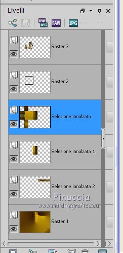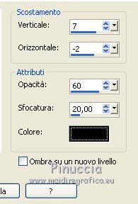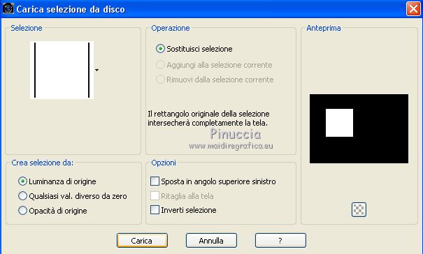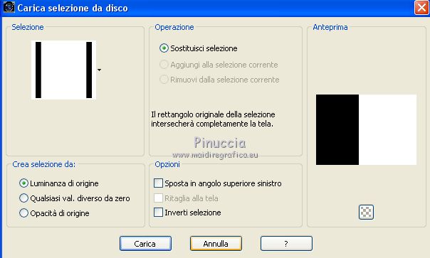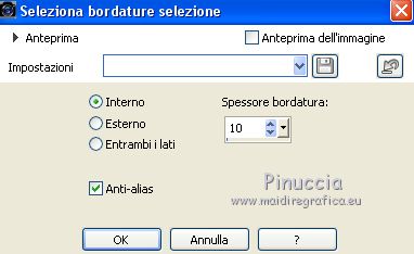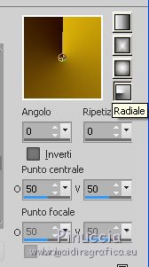 qui puoi trovare qualche risposta ai tuoi dubbi. Se l'argomento che ti interessa non è presente, ti prego di segnalarmelo. Questo tutorial è stato tradotto con CorelX7 e CorelX2, ma può essere realizzato anche con le altre versioni di PSP. Dalla versione X4, il comando Immagine>Rifletti è stato sostituito con Immagine>Capovolgi in orizzontale, e il comando Immagine>Capovolgi con Immagine>Capovolgi in verticale. Nelle versioni X5 e X6, le funzioni sono state migliorate rendendo disponibile il menu Oggetti. Con la nuova versione X7, sono tornati Rifletti>Capovolgi, ma con nuove varianti. Vedi la scheda sull'argomento qui traduzione in francese/traduction en français qui/ici Versioni/Versions quiOccorrente: Materiale qui Per i tubes grazie CibiBijoux (Beauty_Jessamine) e Jewel (Fleur misted jewel 0030) (in questa pagina trovi i links ai siti dei creatori di tubes) Filtri: se hai problemi con i filtri, consulta la mia sezione filtri qui Filters Unlimited 2.0 qui Simple - Blintz qui Filter Factory Gallery A - Weave qui Filter Factory Gallery F - Border Film qui Sapphire Innovation v1.5 - SilverLining qui nella lista dei filtri trovi l'effetto sotto la lettera I "innovations v1.5" Mehdi - Weaver qui Artistic - Rough Pastels qui I filtri Simple e Factory Gallery si possono usare da soli o importati in Filters Unlimited (come fare vedi qui) Se un filtro fornito appare con questa icona ![]() non esitare a cambiare modalità di miscelatura e opacità secondo i colori utilizzati. Nelle ultime versioni di PSP non c'è il gradiente di primo piano/sfondo (Corel_06_029) Puoi usare i gradienti delle versioni precedenti. Trovi qui i gradienti Corel X. Metti le selezioni nella cartella Selezioni. 1. Apri una nuova immagine trasparente 850 x 600 pixels Imposta il colore di primo piano con il colore chiaro #ddb20a, e il colore di sfondo con il colore scuro #280b02. ![]() Passa il colore di primo piano a Gradiente di primo piano/sfondo, stile Radiale. ![]() Riempi l'immagine trasparente con il gradiente.2. Effetti>Plugins>Filters Unlimited 2.0 - Simple - Blintz. ![]() 3. Effetti>Plugins>Mehdi - Weaver. ![]() 4. Selezione>Carica/Salva selezione>Carica selezione da disco. Cerca e carica la selezione Sell-01 ![]() Selezione>Innalza selezione a livello. Selezione>Deseleziona. 5. Effetti>Plugins>Filters Unlimited 2.0 - Filter Factory Gallery A - Weave ![]() Immagine>Rifletti. 6. Selezione>Carica/Salva selezione>Carica selezione da disco. Carica nuovamente la selezione Sell-01 ![]() Selezione>Innalza selezione a livello. Selezione>Deseleziona. Livelli>Disponi>Sposta giù. Effetti>Effetti di bordo>Aumenta. 7. Attiva il livello superiore, Selezione Innalzata. Ripeti Effetti>Plugins>Filters Unlimited 2.0 - Filter Factory Gallery A - Weave dovrai impostare nuovamente i settaggi perchè Unlimited non li tiene in memoria ![]() 8. Effetti>Plugins>Filters Unlimited 2.0 - Filter Factory Gallery F - Border Film. ![]() 9. Selezione>Carica/Salva selezione>Carica selezione da disco. Cerca e carica la selezione Sell-02 ![]() 10. Effetti>Plugins>Innovation v1.5 - SilverLining. ![]() Mantieni selezionato. 11. Selezione>Modifica>Seleziona bordature selezione. ![]() 12. Livelli>Nuovo livello raster. Imposta il colore di sfondo con il colore scuro #272727 Riempi la selezione con il colore scuro #272727.Selezione>Deseleziona. 13. Attiva lo strumento Bacchetta magica ![]() e clicca nella parte trasparente della cornice per selezionarla. ![]() Livelli>Nuovo livello raster. Apri il tube della donna e vai a Modifica>Copia. Torna al tuo lavoro e vai a Modifica>Incolla nella selezione. Selezione>Deseleziona. 14. Attiva il livello inferiore, Raster 1. Selezione>Carica/Salva selezione>Carica selezione da disco. Cerca e carica la selezione Sell-03 ![]() 15. Effetti>Plugins>Innovation v1.5 - SilverLining, con i settaggi precedenti. ![]() Effetti>Effetti di bordo>Aumenta. Selezione>Deseleziona. Effetti>Effetti 3D>Sfalsa ombra, colore #000000. ![]() 16. Attiva il livello Selezione Innalzata ![]() Effetti>Effetti 3D>Sfalsa ombra, colore #000000. ![]() 17. Attiva il livello Selezione innalzata 1. Effetti>Effetti 3D>Sfalsa ombra, colore #000000. ![]() 18. Attiva il livello Raster 2 (la cornice). Effetti>Effetti 3D>Sfalsa ombra, colore #000000. ![]() 19. Attiva il livello Raster 1. Selezione>Carica/Salva selezione>Carica selezione da disco. Cerca e carica la selezione Sell-04 ![]() Effetti>Plugins>Innovation v1.5 - SilverLining, con i settaggi precedenti. ![]() Selezione>Deseleziona. 20. Rimani posizionato sul livello Raster 1. Apri il tube dei fiori e vai a Modifica>Copia. Torna al tuo lavoro e vai a Modifica>Incolla come nuovo livello. Immagine>Ridimensiona, al 70%, tutti i livelli non selezionato. Posiziona correttamente il tube a destra.![]() 21. Effetti>Plugins>Artistic - Rough Pastels Se stai usando la versione francese: Effetti>Plugins>Artistiques>Pastels ![]() Ripeti l'Effetto una seconda volta. 22. Effetti>Plugins>Filters Unlimited 2.0 - Special Effects 1 - Pipes (vertical) ![]() 23. Immagine>Aggiungi bordatura, 1 pixel, simmetriche, colore scuro #272727. Immagine>Aggiungi bordatura, 3 pixels, simmetriche, colore bianco #ffffff. Immagine>Aggiungi bordatura, 1 pixel, simmetriche, colore scuro #272727. Immagine>Aggiungi bordatura, 3 pixels, simmetriche, colore bianco #ffffff. Immagine>Aggiungi bordatura, 1 pixel, simmetriche, colore scuro #272727. Immagine>Aggiungi bordatura, 30 pixels, simmetriche, colore bianco #ffffff. Immagine>Aggiungi bordatura, 1 pixel, simmetriche, colore scuro #272727. Firma il tuo lavoro e salva in formato jpg. Versione con tubes di Gabry (il fiore è mio) ![]() Versione con tubes di Gabry e Jewel ![]() ![]() Puoi scrivermi se hai problemi o dubbi, o trovi un link che non funziona, o soltanto per un saluto. 15 Gennaio 2021 |