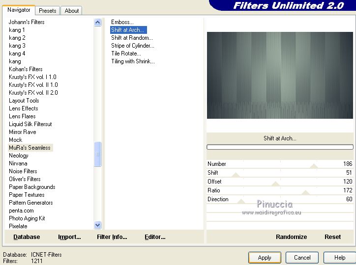 3. Effets>Modules Externes>Filters Unlimited 2.0 - Mura's Seamless - Shift at Arch