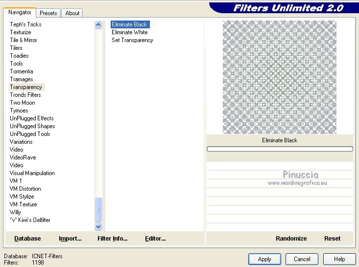 20. Effets>Modules Externes>Filters Unlimited 2.0 - Transparency - Eliminate Black.