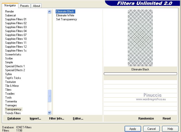 14. Effets>Modules Externes>Filters Unlimited 2.0 - Transparency - Eliminate Black.