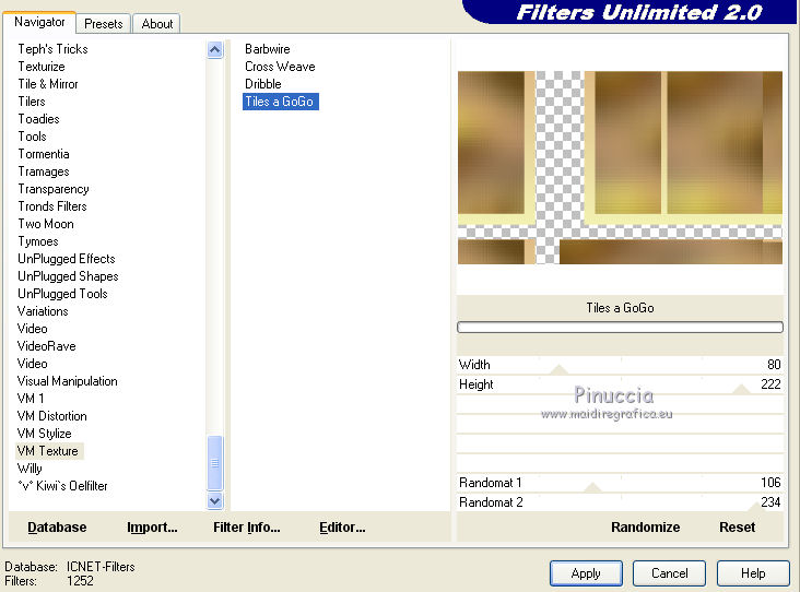 8. Effets>Modules Externes>s>Filters Unlimited 2.0 - VM Texture - Tiles a GoGo