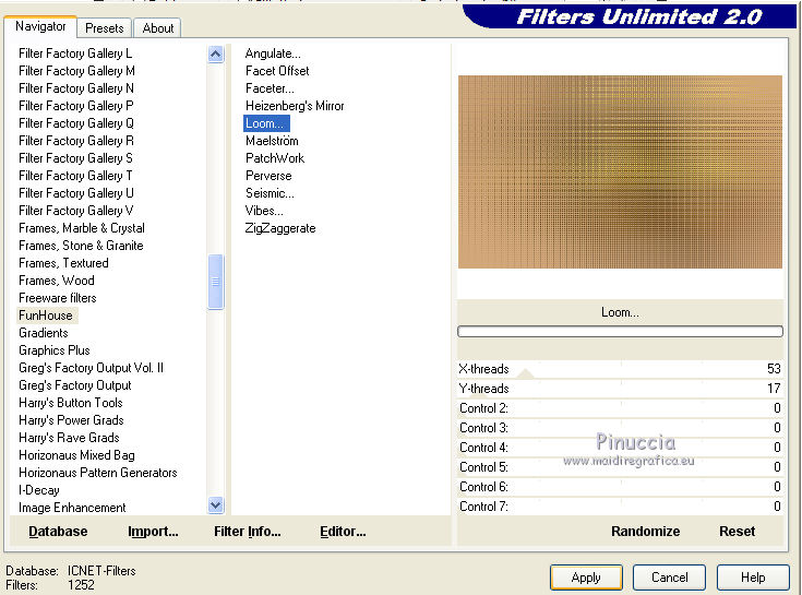 5. Effets>Modules Externes>s>Filters Unlimited 2.0 - FunHouse - Loom.