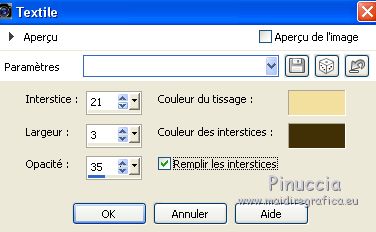 couleur du tissage #f3df9e; couleur des interstices #412f09.