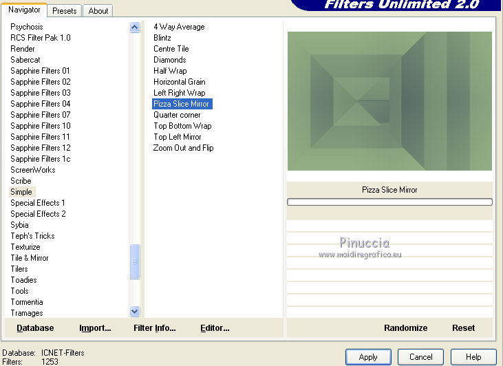 3. Effets>Modules Externes>Filters Unlimited 2.0 - Simple - Pizza Slice Mirror