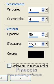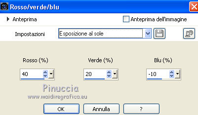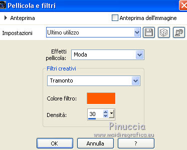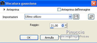 qui puoi trovare qualche risposta ai tuoi dubbi. Se l'argomento che ti interessa non è presente, ti prego di segnalarmelo. Questo tutorial è stato tradotto con CorelX7 e CorelX2, ma può essere realizzato anche con le altre versioni di PSP. Dalla versione X4, il comando Immagine>Rifletti è stato sostituito con Immagine>Capovolgi in orizzontale, e il comando Immagine>Capovolgi con Immagine>Capovolgi in verticale. Nelle versioni X5 e X6, le funzioni sono state migliorate rendendo disponibile il menu Oggetti. Con la nuova versione X7, sono tornati Rifletti>Capovolgi, ma con nuove varianti. Vedi la scheda sull'argomento qui traduzione in francese/traduction en français qui/iciVersioni/Versions qui Occorrente: Materiale qui Per i tubes grazie Guismo e Grisi. (in questa pagina trovi i links ai siti dei creatori di tubes) Filtri: se hai problemi con i filtri, consulta la mia sezione filtri qui Filters Unlimited 2.0 qui VM Distortion - Tiles a Gogo qui Carolaine and Sensibility - CS-LDots qui DSB Flux - Linear Transmission qui Mura's Meister - Perspective Tiling qui I filtri VM Distortion si possono usare da soli o importati in Filters Unlimited (come fare vedi qui) Se un filtro fornito appare con questa icona ![]() non esitare a cambiare modalità di miscelatura e opacità secondo i colori utilizzati. Nelle ultime versioni di PSP non c'è il gradiente di primo piano/sfondo (Corel_06_029) Puoi usare i gradienti delle versioni precedenti. Trovi qui i gradienti Corel X. 1. Apri una nuova immagine trasparente 1000 x 700 pixels. 2. Imposta il colore di primo piano con il colore chiaro #9c948c, e il colore di sfondo con il colore scuro #50504c. ![]() Passa il colore di primo piano a Gradiente di primo piano/sfondo, stile Lineare. ![]() Riempi l'immagine trasparente con il gradiente.3. Selezione>Seleziona tutto. Apri il tube del paesaggio e vai a Modifica>Copia. Torna al tuo lavoro e vai a Modifica>Incolla nella selezione. Selezione>Deseleziona. 4. Effetti>Effetti di immagine>Motivo unico, con i settaggi standard. ![]() 5. Regola>Sfocatura>Sfocatura gaussiana - raggio 21. ![]() 6. Effetti>Plugins>VM Distortion - Tiles a GoGo. ![]() Effetti>Effetti di bordo>Aumenta. 7. Effetti>Effetti di riflesso>Specchio rotante, con i settaggi standard. ![]() 8. Attiva lo strumento Selezione ![]() (non importa il tipo di selezione impostato, perchè con la selezione personalizzata si ottiene sempre un rettangolo) clicca sull'icona Selezione personalizzata ![]() e imposta i seguenti settaggi. ![]() Selezione>Innalza selezione a livello. Selezione>Deseleziona. 9. Effetti>Plugins>DSB Flux - Linear Transmission. ![]() Effetti>Effetti di bordo>Aumenta. 10. Selezione personalizzata ![]() ![]() O, se preferisci, seleziona con lo strumento Selezione ![]() ![]() 11. Effetti>Plugins>Carolaine and Sensibility - CS-LDots, con i settaggi standard. ![]() Selezione>Deseleziona. 12. Selezione personalizzata ![]() ![]() O, se preferisci, seleziona con lo strumento Selezione ![]() ![]() Premi sulla tastiera il tasto CANC ![]() Selezione>Deseleziona. 13. Effetti>Effetti di riflesso>Specchio rotante. ![]() 14. Effetti>Effetti 3D>Sfalsa ombra, colore #000000. ![]() 15. Modifica>Incolla come nuovo livello (il tube del paesaggio è sempre in memoria). Sposta il tube un po' più a sinistra e in alto.Livelli>Disponi>Sposta giù. ![]() 16. Livelli>Unisci>Unisci visibile. 17. Selezione personalizzata ![]() ![]() Selezione>Innalza selezione a livello. Selezione>Deseleziona. 18. Effetti>Plugins>Mura's Meister - Perspective Tiling. ![]() Effetti>Effetti di bordo>Aumenta. 19. Effetti>Effetti geometrici>Sfera. ![]() 20. Regola>Colore>Rosso/Verde/Blu - preset Esposizione al sole. ![]() 21. Attiva il livello inferiore, Uniti. Selezione personalizzata ![]() ![]() Selezione>Innalza selezione a livello. Selezione>Deseleziona. Livelli>Disponi>Sposta su. 22. Effetti>Effetti 3D>Smusso a incasso. ![]() 23. Effetti>Effetti geometrici>Sfera, con i settaggi precedenti. ![]() 24. Effetti>Effetti di foto>Pellicola e filtri. ![]() Livelli>Duplica. Cambia la modalità di miscelatura di questo livello in Luce diffusa. 25. Attiva il livello Selezione innalzata. ![]() Effetti>Effetti 3D>Sfalsa ombra, colore nero #000000. ![]() 26. Attiva il livello Selezione>Innalzata 1. Effetti>Effetti 3D>Sfalsa ombra, colore #000000. ![]() 27. Attiva il livello superiore. Apri il tube della donna e vai a Modifica>Copia. Torna al tuo lavoro e vai a Modifica>Incolla come nuovo livello. Immagine>Ridimensiona, quanto necessario (per me 60%), tutti i livelli non selezionato. Sposta il tube a destra, o come preferisci.28. Effetti>Effetti 3D>Sfalsa ombra, colore #000000, o a tua scelta. ![]() 29. Apri il tube accessorio e vai a Modifica>Copia. Torna al tuo lavoro e vai a Modifica>Incolla come nuovo livello. Immagine>Ridimensiona, quanto necessario (per me 50%), tutti i livelli non selezionato. Sposta il tube a sinistra, o come preferisci.Io ho spostato il livello sopra il livello di sfondo ![]() Effetti>Effetti 3D>Sfalsa ombra, a scelta (per l'esempio ho usato i settaggi precedenti). 30. Immagine>Aggiungi bordatura, 5 pixels, simmetriche, colore scuro #50504c. Immagine>Aggiungi bordatura, 30 pixels, simmetriche, colore bianco. Attiva lo strumento Bacchetta magica ![]() e clicca nel bordo bianco per selezionarlo. 31. Effetti>Effetti di riflesso>Caleidoscopio. ![]() il risultato cambia secondo le immagini e anche la posizione dei tube. Per esempio, se avessi usato il tube senza rifletterlo, avrei avuto questo ![]() Mantieni selezionato. 32. Regola>Colore>Rosso/verde/blu, con i settaggi precedenti. ![]() 33. Immagine>Aggiungi bordatura, 5 pixels, simmetriche, colore #000000. Immagine>Ridimensiona, a tuo piacimento, tutti i livelli selezionato. Firma il tuo lavoro e salva in formato jpg. I tubes di questo esempio sono di Guismo ![]() ![]() Puoi scrivermi se hai problemi o dubbi, o trovi un link che non funziona, o soltanto per un saluto. 5 Luglio 2019 |
