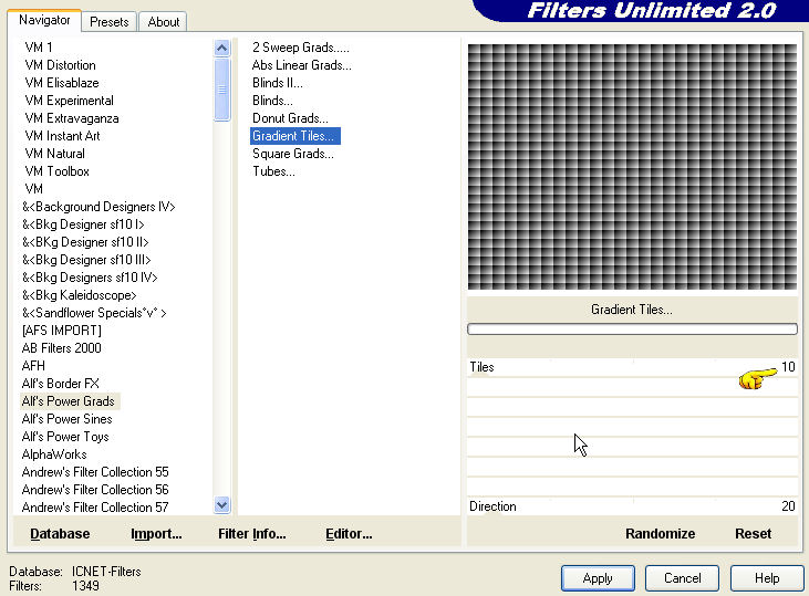 19. Effetti>Plugins>Filters Unlimited 2.0 - Alf's Power Grads - Gradient Tiles.