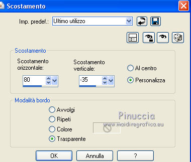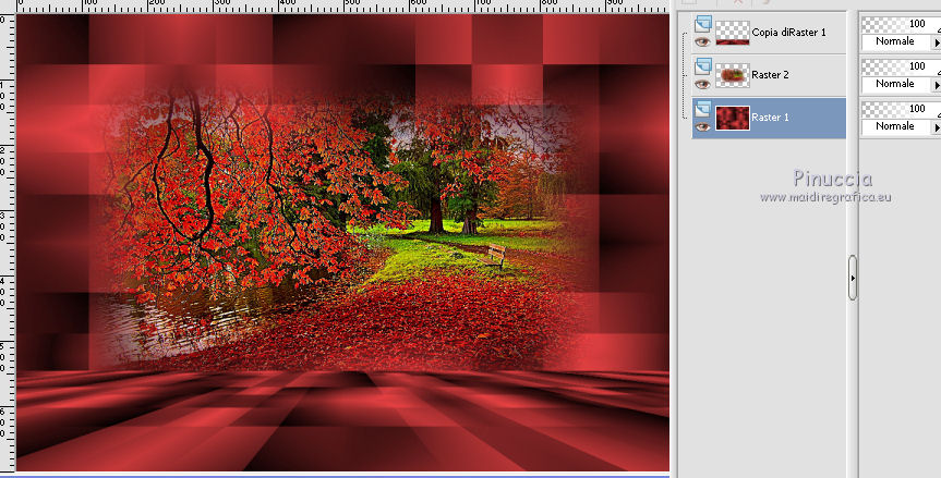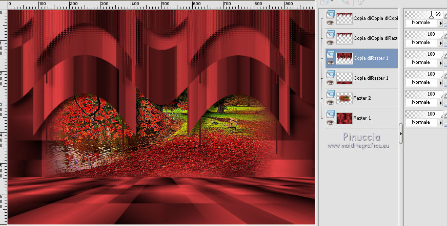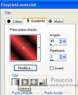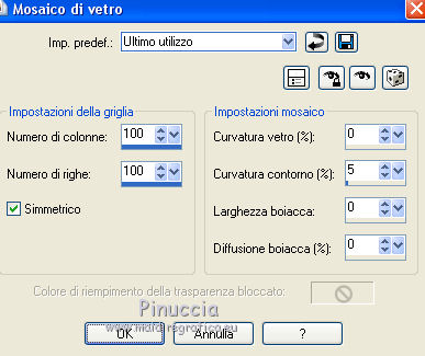 qui puoi trovare qualche risposta ai tuoi dubbi. Se l'argomento che ti interessa non è presente, ti prego di segnalarmelo. Questo tutorial è stato creato con Corel X6 e tradotto con CorelX6 e CorelX7, ma può essere realizzato anche con le altre versioni di PSP. Dalla versione X4, il comando Immagine>Rifletti è stato sostituito con Immagine>Capovolgi in orizzontale, e il comando Immagine>Capovolgi con Immagine>Capovolgi in verticale. Nelle versioni X5 e X6, le funzioni sono state migliorate rendendo disponibile il menu Oggetti. Con la versione X7 sono tornati i comandi Immagine>Rifletti e Immagine>Capovolgi, ma con nuove funzioni. Vedi la scheda sull'argomento qui traduzione in francese qui Le vostre versioni qui Occorrente: Materiale qui Per i tube grazie Mentali, Mina e Alejandra Rosales (in questa pagina trovi i links ai loro siti). Plugins: Filters Unlimited 2.0 qui Filter Factory Gallery L - Tiles a Go Go qui Filter Factory Gallery U - Centre Square Tiler qui FM Tile Tools - Saturation Emboss qui VM Toolbox - Radial Mosaic qui Mura's Meister - Perspective Tiling qui I filtri VM Toolbox e Factory Gallery si possono usare da soli o importati in Filters Unlimited (come fare vedi qui) Se un filtro fornito appare con questa icona ![]() Se vuoi usare altri colori, non esitare a cambiare le modalità di miscelatura e l'opacità dei livelli. Nelle ultime versioni di PSP non c'è il gradiente di primo piano/sfondo (Corel_06_029) Puoi usare i gradienti delle versioni precedenti. Trovi qui i gradienti Corel X. 1. Apri una nuova immagine trasparente 1000 x 700 pixels. 2. Imposta il colore di primo piano con #f14547, e il colore di sfondo con #000000. ![]() 3. Passa il colore di primo piano a Gradiente di primo piano/sfondo, stile Lineare. ![]() 4. Riempi l'immagine trasparente con il gradiente.5. Effetti>Plugins>Filter Factory Gallery L - Tiles a Go Go. ![]() 6. Effetti>Plugins>Filter Factory Gallery U - Centre Square Tiler. 7. Effetti>Effetti di immagine>Motivo unico. ![]() 8. Livelli>Duplica. 9. Effetti>Plugins>Mura's Meister - Perspective Tiling. ![]() 10. Apri il tube Mina@.mist.autunno.24.10.pspimage e vai a Modifica>Copia. Torna al tuo lavoro e vai a Modifica>Incolla come nuovo livello. 11. Regola>Messa a fuoco>Maschera di contrasto. ![]() 12. Livelli>Disponi>Sposta giù. 13. Attiva il livello Raster 1. ![]() 14. Livelli>Duplica. Livelli>Disponi>Porta in alto. 15. Immagine>Ridimensiona, al 60%, tutti i livelli non selezionato. 16. Effetti>Plugins>VM Toolbox - Radial Mosaic. ![]() 17. Effetti>Effetti di distorsione>Coordinate polari. ![]() 18. Effetti>Effetti di immagine>Scostamento. ![]() 19. Effetti>Effetti 3D>Sfalsa ombra. ![]() 20. Livelli>Duplica. Effetti>Effetti di immagine>Scostamento, con i settaggi precedenti. ![]() 21. Di nuovo Livelli>Duplica. Effetti>Effetti di trama>Mosaico di vetro. ![]() 22. Abbassa l'opacità di questo livello al 69%. Regola>Messa a fuoco>Metti a fuoco. 23. Attiva il livello Copia di Raster 1. ![]() 24. Effetti>Effetti geometrici>Sfera. ![]() 25. Effetti>Plugins>FM Tile tools - Saturation Emboss, con i settaggi standard. ![]() 26. Apri il tube mentali-femme775.pspimage e vai a Modifica>Copia. Torna al tuo lavoro e vai a Modifica>Incolla come nuovo livello. Immagine>Ridimensiona, all'85%, tutti i livelli non selezionato. Regola>Messa a fuoco>Metti a fuoco. 27. Livelli>Disponi>Porta in alto. 28. Effetti>Effetti di immagine>Scostamento. ![]() 29. Effetti>Effetti 3D>Sfalsa ombra, con i settaggi precedenti. 30. Apri il tube 7908412024flower35ar821alejandrarosales11207.png., cancella il watermark, e vai a Modifica>Copia. Torna al tuo lavoro e vai a Modifica>Incolla come nuovo livello. 31. Effetti>Effetti di immagine>Scostamento. ![]() 32. Effetti>Effetti 3D>Sfalsa ombra, con i settaggi precedenti. 33. Firma il tuo lavoro. Livelli>Unisci>Unisci tutto e salva in formato jpg. I tubes di questo esempio sono di Thafs e Gabry ![]() ![]() La mia mail è nel menu in cima alla pagina. Puoi scrivermi se hai problemi o dubbi, o trovi un link che non funziona, o soltanto per un saluto. Se vorrai mandarmi la tua versione, sarò lieta di pubblicarla. 9 Maggio 2017 Le mie traduzioni sono regolarmente registrate |