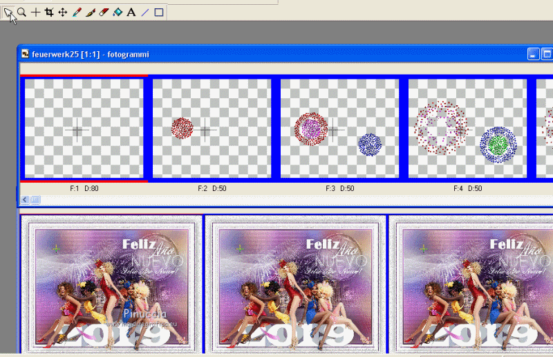 42. Ouvrir l'animation feuerwerk25.gif (un des trois feux d'artifice), composée egalement de 13 images.