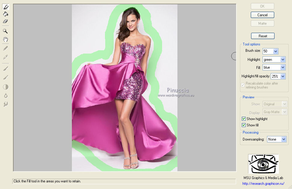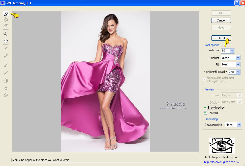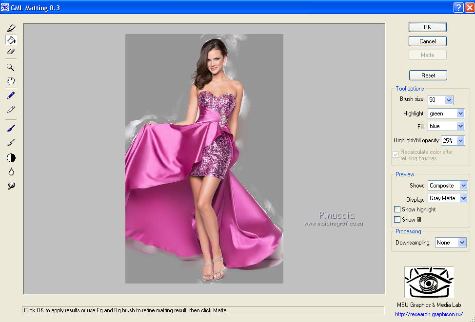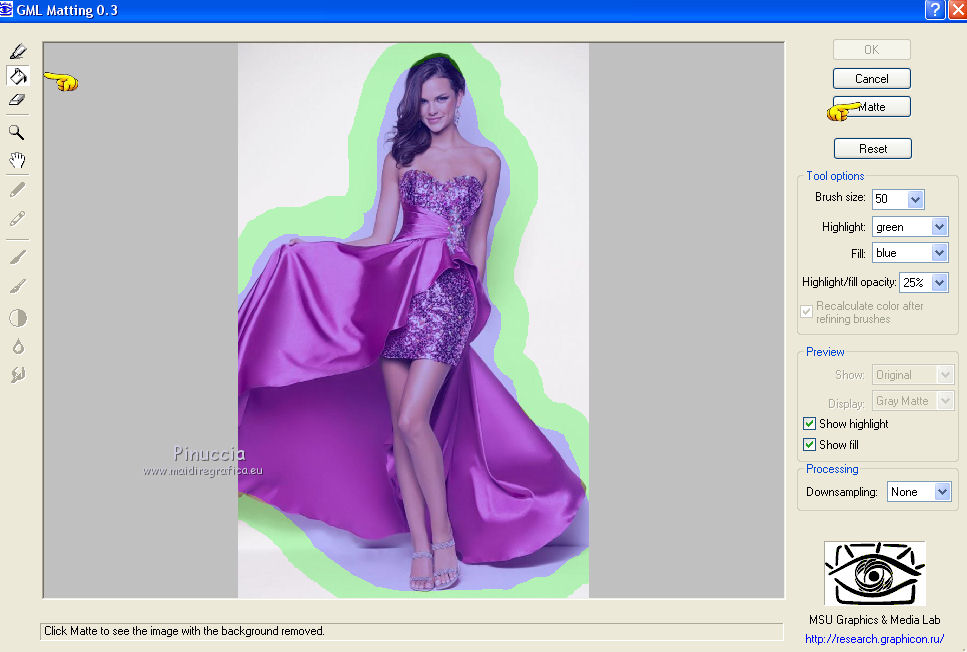 Cliquer d'abord sur l'outil à gauche, et puis à droite cliquer sur Matte