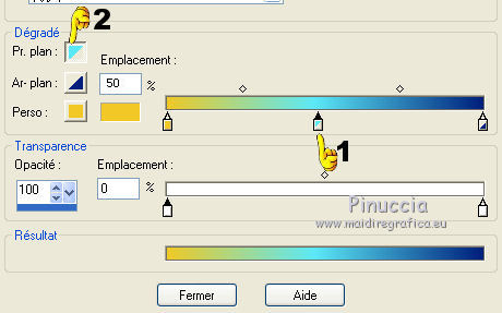 2. Préparer un dégradé de premier plan/arrière plan, style Linéaire, composé par trois couleurs,