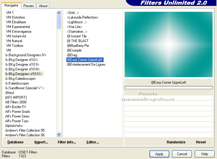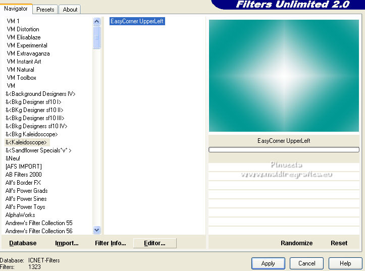 Effets>Modules Externes>Filters Unlimited 2.0 - &<Kaleidoscope> - EasyCorner UpperLeft.