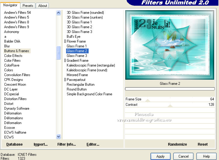 Effets>Modules Externes>Filters Unlimited 2.0 - Button & Frames - Glass Frame 2.