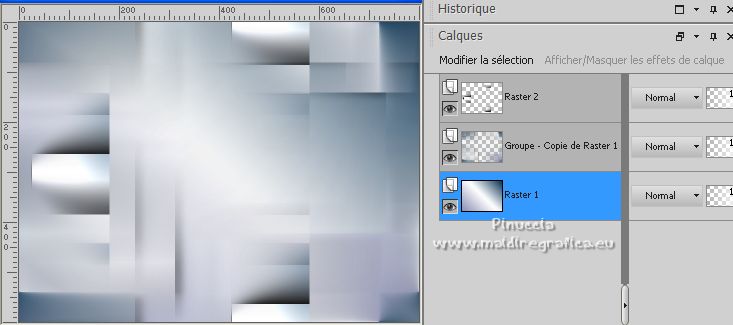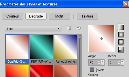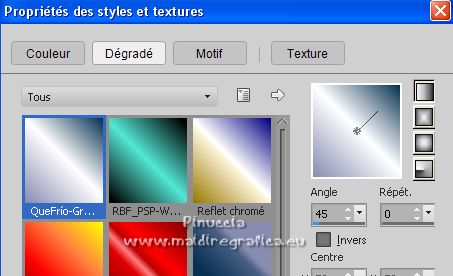 2. Placer en avant plan le dégradé et sélectionner le dégradé QueFrio-GradMisae, style Linéaire.