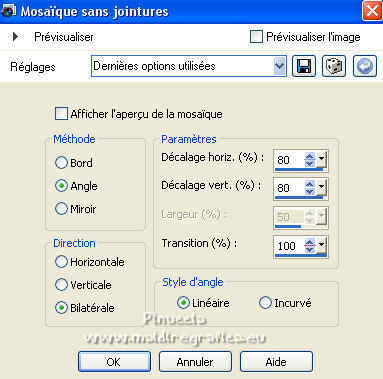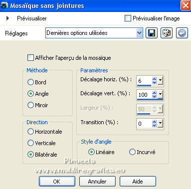 13. Répéter Effets>Effets d'image>Mosaïque sans jointures, avec ces réglages.