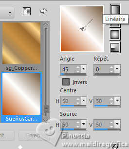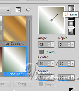 Placer en avant plan le dégradé et sélectionner le dégradé SueñosCarnaval-GradMisae, style Linéaire.