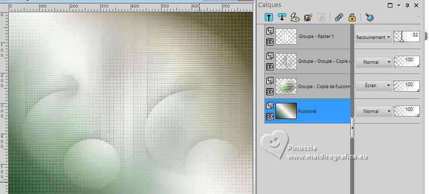 Placer le calque en mode Recouvrement et réduire l'opacité à 32%.