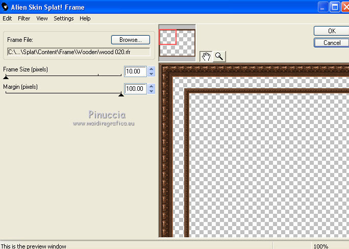 14. Ripeti Effetti>Plugins>Alien Skin Splat - Frame, con i seguenti settaggi: