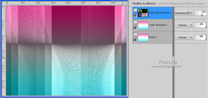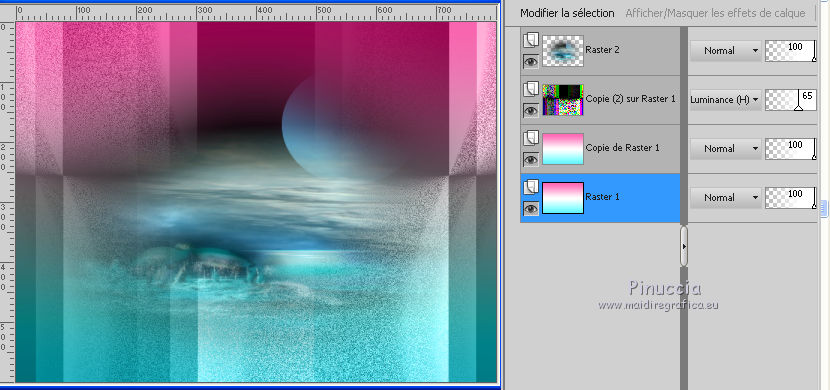 8. Placer le calque en mode Luminance (héritée) et réduire l'opacité à 65%.