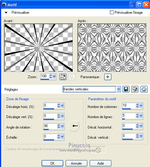 8. Effets>Effets de réflexion>Motif, Bandes verticales.