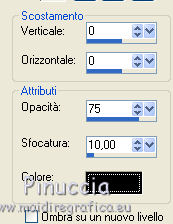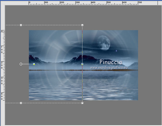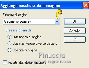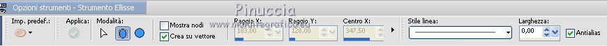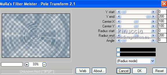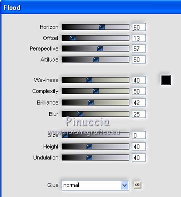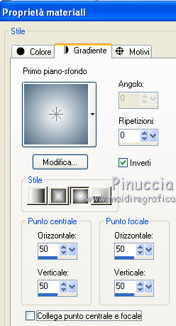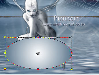 qui puoi trovare qualche risposta ai tuoi dubbi. Se l'argomento che ti interessa non è presente, ti prego di segnalarmelo. Per tradurre questo tutorial ho usato Corel X. Occorrente: Materiale qui Filtri: Mura's Meister - Pole Transform qui Flaming Pear - Flood qui ![]() Se intendi usare il font, aprilo e minimizzalo. Lo troverai nella lista dei font disponibili, quando ti servirà. Apri il resto del materiale in PSP. Apri una nuova immagine trasparente 700 x 500 pixels. Imposta il colore di primo piano con #4c6a82, e il colore di sfondo con il colore bianco. Passa il colore di primo piano a Gradiente con i seguenti settaggi, ![]() Riempi l'immagine trasparente con il gradiente.Livelli>Nuovo livello raster. Cambia il colore di primo piano da Gradiente a Colore. Riempi il nuovo livello con il colore di primo piano.Livelli>Nuovo livello maschera>Da immagine. Apri il menu sotto la finestra di origine e vedrai la lista dei files aperti. Seleziona Geometric Squares con i seguenti settaggi. ![]() Livelli>Unisci>Unisci gruppo. Effetti>Plugins>Mura's Meister - Pole Transform: ![]() Effetti>Effetti di bordo>Aumenta. Apri il tube Misssilly-MistedBlueNature-Oct2008 e vai a Modifica>Copia. Torna al tuo lavoro e vai a Modifica>Incolla come nuovo livello. Sposta il tube in alto a destra.Effetti>Plugins>Flaming Pear - Flood. ![]() Attiva lo strumento Deformazione , premendo sulla tastiera il tasto D,e vedrai il tube "ingabbiato" dalla griglia dello strumento. ![]() Spingi il nodo centrale inferiore per adattare l'immagine all'altezza della tela. ![]() Livelli>Duplica. Ancora Livelli>Duplica. Immagine>Rifletti. Sposta questo tube a sinistra, come nell'esempio.![]() Apri il tube MarieL_2007_03Mars_formal_experimentst e vai a Modifica>Copia. Torna al tuo lavoro e vai a Modifica>Incolla come nuovo livello. Immagine>Ridimensiona, all'85%, tutti i livelli non selezionato. Sposta il tube in alto a sinistra.Apri il tube MarieL_2006_11Novembre_SNM01t e vai a Modifica>Copia. Torna al tuo lavoro e vai a Modifica>Incolla come nuovo livello. Immagine>Rifletti. Immagine>Ridimensiona, 4 volte all'85%, tutti i livelli non selezionato. Effetti>Effetti di bordo>Aumenta. Sposta il tube nell'angolo in basso a destra.Apri il tube mou_zilver e vai a Modifica>Copia. Torna al tuo lavoro e vai a Modifica>Incolla come nuovo livello. Immagine>Ridimensiona, all'85%, tutti i livelli non selezionato. Sposta il tube in basso a sinistra.Effetti>Effetti 3D>sfalsa ombra: ![]() Attiva lo strumento Forme predefinite-ellisse ![]() ![]() Imposta il colore di primo piano con il gradiente, e chiudi il colore di sfondo. Traccia un'ellisse come nell'esempio. ![]() Clicca su uno strumento qualsiasi, per esempio il testo, la forma sarà "ingabbiata" e potrai, se necessario, spostare o correggere le dimensioni della forma. ![]() Livelli>Converti in livello raster. Effetti>Effetti 3D>Sfalsa ombra: ![]() Livelli>Disponi>Sposta giù. Apri "text" e vai a Modifica>Copia. Torna al tuo lavoro e vai a Modifica>Incolla come nuovo livello. Imposta il colore di primo piano con il colore nero. Livelli>Nuovo livello raster. Selezione>Seleziona tutto. Selezione>Modifica>Contrai - 2 pixels. Selezione>Inverti. Riempi con il colore nero.Effetti>Effetti 3D>Sfalsa ombra: ![]() Selezione>Deseleziona. Aggiungi il tuo nome e/o il tuo watermark e salva in formato jpg.