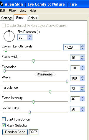 Ripeti l'Effetto Fire con gli stessi settaggi ma cliccando una volta su Random seed.