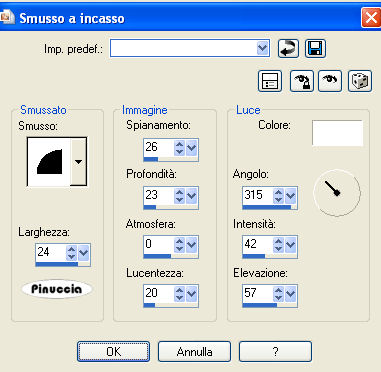 Effetti>Effetti 3D>Smusso a incasso, con i settaggi precedenti.