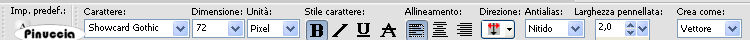 Per il mio esempio ho usato il font Showcard Gothic con i seguenti settaggi.