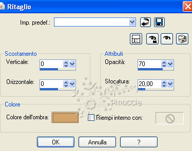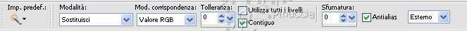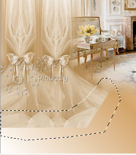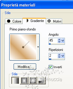 qui puoi trovare qualche risposta ai tuoi dubbi. Se l'argomento che ti interessa non è presente, ti prego di segnalarmelo. Per tradurre questo tutorial ho usato Corel X. Occorrente: Materiale qui Filtri: Flaming Pear qui Apri una nuova immagine trasparente 600 x 450 pixels. Imposta il colore di primo piano con #d3a46a, e il colore di sfondo con #ffffff. Passa il colore di primo piano a Gradiente, con i seguenti settaggi: ![]() Riempi l'immagine trasparente con il gradiente.Apri il tube comteche-com_homedecor36_ice e vai a Modifica>Copia. Torna al tuo lavoro e vai a Modifica>Incolla come nuovo livello. Sposta il tube in alto.Apri il tube Rideaux-Doubles-TCH e vai a Modifica>Copia. Torna al tuo lavoro e vai a Modifica>Incolla come nuovo livello. Sposta il tube nell'angolo in alto a sinistra.Regola>Tonalità e Saturazione>Viraggio: ![]() Attiva lo strumento Selezione a mano libera e seleziona il bordo delle tende, come nell'esempio.![]() Selezione>Modifica>Sfuma - 30 pixels. Premi sulla tastiera il tasto CANC .Selezione>Deseleziona. Livelli>Duplica. Immagine>Rifletti. ![]() Apri Text e vai a Modifica>Copia. Torna al tuo lavoro e vai a Modifica>Incolla come nuovo livello. Sposta il testo in alto, come nel mio esempio.Apri il tube Marif_2007_05Mai_misted_decor0161 e vai a Modifica>Copia. Torna al tuo lavoro e vai a Modifica>Incolla come nuovo livello. Immagine>Ruota per gradi - 70 gradi a sinistra: ![]() Immagine>Ridimensiona, 3 volte all'85%, tutti i livelli non selezionato. Regola>Tonalità e Saturazione>Viraggio, con i settaggi precedenti. Sposta il tube nell'angolo in basso a destra.![]() Aggiungi il tuo nome e/o il tuo watermark. Immagine>Aggiungi bordatura, 2 pixels, simmetriche, con il colore #d3a46a. Immagine>Aggiungi bordatura, 20 pixels, simmetriche, con il colore #ffffff. Immagine>Aggiungi bordatura, 2 pixels, simmetriche, con il colore #d3a46a. Seleziona il bordo bianco con la bacchetta magica ![]() ![]() e riempilo con il gradiente.Effetti>Plugins>Flaming Pear - Transline. Effetti>Effetti 3D>Ritaglio: ![]() Apri il tube JC_Fairy in thesky e vai a Modifica>Copia. Torna al tuo lavoro e vai a Modifica>Incolla come nuovo livello. Immagine>Ridimensiona, all'85%, tutti i livelli non selezionato. Sposta il tube nell'angolo in basso a sinistra.Livelli>Duplica, 2 volte. Aggiungi il tuo nome e/o il tuo watermark. Livelli>Unisci>Unisci tutto e salva in formato jpg.