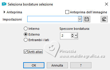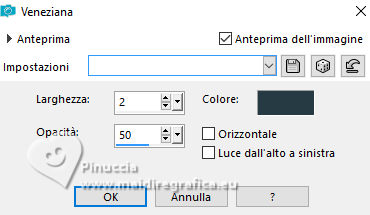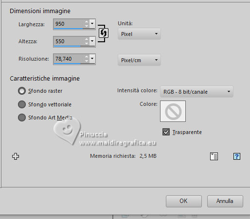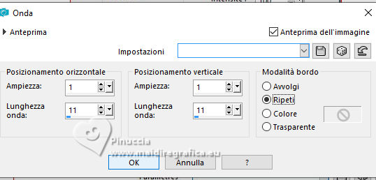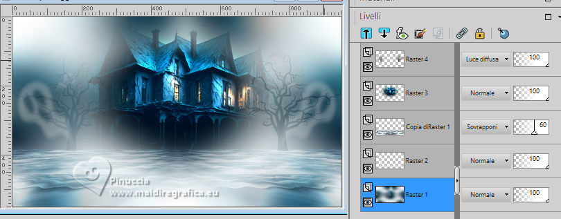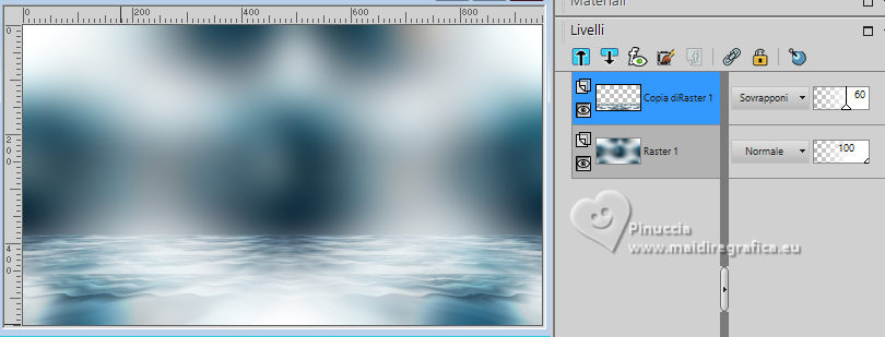 qui puoi trovare qualche risposta ai tuoi dubbi. Se l'argomento che ti interessa non è presente, ti prego di segnalarmelo. Questo tutorial è stato tradotto con PSPX9, ma può essere realizzato anche con le altre versioni di PSP. Dalla versione X4, il comando Immagine>Rifletti è stato sostituito con Immagine>Capovolgi in orizzontale, e il comando Immagine>Capovolgi con Immagine>Capovolgi in verticale. Nelle versioni X5 e X6, le funzioni sono state migliorate rendendo disponibile il menu Oggetti. Con la nuova versione X7, sono tornati Rifletti>Capovolgi, ma con nuove varianti. Vedi la scheda sull'argomento qui English Translation qui/here Le vostre versioni qui![]() Occorrente: ![]() Tube e décos sono di Moi-Même. Testo tratto da Jules Verne. Bottiglia vuota e tubes da Freepng (in questa pagina trovi i links ai siti dei creatori del materiale) ![]() se hai problemi con i filtri, consulta la mia sezione filtri qui Filters Unlimited 2.0 qui &<Bkg Designer sf10I> - Cut Glass BugEye (da importare in Unlimited) qui Mura's Meister - Perspective Tiling qui Mura's Meister - Copies qui It@lian Editors - Effetto Fantasma qui Alien Skin Eye Candy 5 Impact - Motion Trail qui I filtri Italian Editors si possono usare da soli o importati in Filters Unlimited (come fare vedi qui) Se un filtro fornito appare con questa icona ![]() non esitare a cambiare modalità di miscelatura e opacità secondo i colori utilizzati. Metti il preset Cliccando sul file una o due volte (a seconda delle tue impostazioni), automaticamente il preset si installerà nella cartella corretta. perché uno o due clic vedi qui ![]() Imposta il colore di primo piano con #b2c8d2, e il colore di sfondo con #273a43. ![]() 1. Apri una nuova immagine trasparente 950 x 550 pixels. ![]() Selezione>Seleziona tutto. 2. Apri il paesaggio ai-generated-misted par MM ![]() Attiva il livello 1 ![]() Modifica>Copia. Minimizza il tube. Torna al tuo lavoro e vai a Modifica>Incolla nella selezione. Selezione>Deseleziona. 3. Effetti>Effetti di immagine>Motivo unico, con i settaggi standard. ![]() Effetti>Effetti di immagine>Motivo unico, fianco a fianco. ![]() 4. Livelli>Unisci>Unisci tutto. Livelli>Innalza livello di sfondo. Regola>Sfocatura>Sfocatura gaussiana - raggio 30. ![]() 5. Livelli>Duplica. Effetti>Plugins>Filters Unlimited 2.0 - &<Bkg Designer sf10I> - Cut Glass BugEye, con i settaggi standard. ![]() Effetti>Plugins>Mura's Meister - Perspective Tiling. ![]() Effetti>Effetti di distorsione>Vento - da sinistra, intensità 100. ![]() Ripeti Effetti>Effetti di distorsione>Vento - da destra, intensità 100. ![]() Effetti>Effetti di distorsione>Onda. ![]() Ripeti Effetti>Plugins>Mura's Meister - Perspective Tiling, con i settaggi precedenti. ![]() Cambia la modalità di miscelatura di questo livello in Sovrapponi, e abbassa l'opacità al 60%. ![]() 6. Attiva il livello inferiore, Raster 1. Apri déco 1 ![]() Modifica>Copia. Torna al tuo lavoro e vai a Modifica>Incolla come nuovo livello. Non spostarlo. 7. Attiva il livello superiore. Attiva nuovamente il tube ai-generated-misted par MM e copia il livello 2 Torna al tuo lavoro e vai a Modifica>Incolla come nuovo livello. Immagine>Ridimensiona, al 60%, tutti i livelli non selezionato. Tasto K per attivare lo strumento Puntatore ![]() mantieni Posizione X: 101,00 e imposta Posizione Y: -31,00. ![]() 8. Apri déco 2 ![]() Modifica>Copia. Torna al tuo lavoro e vai a Modifica>Incolla come nuovo livello. Mantieni Posizione X: -5,00 e imposta Posizione Y: 110,00. ![]() Tasto M per deselezionare lo strumento. Cambia la modalità di miscelatura di questo livello in Luce diffusa. 9. Attiva il livello di sfondo, Raster 1. Modifica>Copia Modifica>Incolla come nuova immagine, e minimizza questa immagine. (salva per precauzione). 10. Torna al tuo lavoro ![]() Livelli>Unisci>Unisci visibile. 11. Livelli>Duplica. Immagine>Ridimensiona, al 70%, tutti i livelli non selezionato. Attiva lo strumento Selezione e clicca su Livello opaco ![]() Selezione>Modifica>Seleziona bordature selezione. ![]() Riempi la selezione con il colore di sfondo.Selezione>Deseleziona. 12. Di nuovo strumento Selezione e clicca su Livello opaco Selezione>Modifica>Seleziona bordature selezione. ![]() Riempi la selezione con il colore di primo piano.Effetti>Effetti di trama>Veneziana - colore di sfondo. ![]() Selezione>Deseleziona. Effetti>Effetti 3D>Sfalsa ombra, colore nero. ![]() 13. Livelli>Duplica. Attiva il livello sottostante. Effetti>Plugins>Mura's Meister - Copies. ![]() Effetti>Plugins>It@lian Editors - Effetto Fantasma. ![]() Effetti>Effetti di bordo>Aumenta. 14. Attiva il livello di sfondo. Attiva l'immagine in attesa dal punto 9 ![]() Modifica>Copia. Minimizza l'immagine, perchè ti servirà ancora. Torna al tuo lavoro e vai a Modifica>Incolla come nuovo livello. Livelli>Disponi>Sposta giù. 15. Attiva il livello soprastante, Uniti Effetti>Plugins>Mura's Meister - Perspective Tiling ![]() Regola>Sfocatura>Sfocatura gaussiana - raggio 5 (o secondo i tuoi colori). ![]() Effetti>Effetti geometrici>Sfera. ![]() Livelli>Duplica. Immagine>Capovolgi. Livelli>Unisci>Unisci giù. 16. Attiva il livello superiore. Apri il tube lune ![]() Modifica>Copia. Torna al tuo lavoro e vai a Modifica>Incolla come nuovo livello. Tasto K per attivare lo strumento Puntatore ![]() e imposta Posizione X: 136,00 e Posizione Y: 87,00. ![]() Cambia la modalità di miscelatura di questo livello in Luce diffusa, o come preferisci. 17. Apri Fantôme déco1 ![]() Modifica>Copia. Torna al tuo lavoro e vai a Modifica>Incolla come nuovo livello. Imposta Posizione X: 430,00 e Posizione Y: 293,00. ![]() Abbassa l'opacità di questo livello all'80%. 18. Apri fantôme déco2 ![]() Modifica>Copia. Torna al tuo lavoro e vai a Modifica>Incolla come nuovo livello. Imposta Posizione X: 433,00 e Posizione Y: -5,00. ![]() 19. Apri BouteilleMM ![]() Modifica>Copia. Torna al tuo lavoro e vai a Modifica>Incolla come nuovo livello. imposta Posizione X: 854,00 e Posizione Y: 268,0