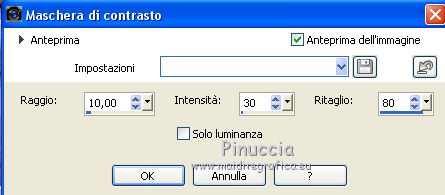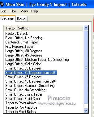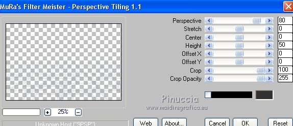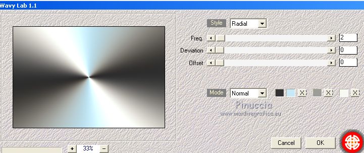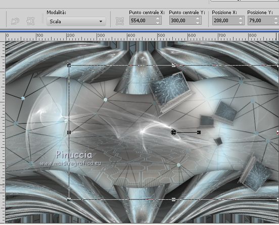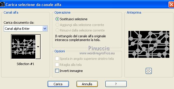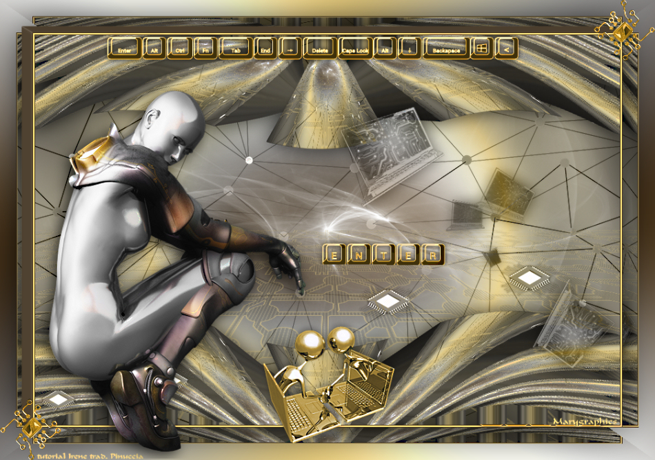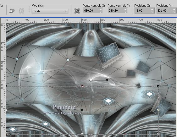qui puoi trovare qualche risposta ai tuoi dubbi. Se l'argomento che ti interessa non è presente, ti prego di segnalarmelo. Questo tutorial è stato realizzato con Corel2020 e tradotto con CorelX7, ma può essere realizzato anche con le altre versioni di PSP. Dalla versione X4, il comando Immagine>Rifletti è stato sostituito con Immagine>Capovolgi in orizzontale, e il comando Immagine>Capovolgi con Immagine>Capovolgi in verticale. Nelle versioni X5 e X6, le funzioni sono state migliorate rendendo disponibile il menu Oggetti. Con la nuova versione X7, sono tornati Rifletti>Capovolgi, ma con nuove varianti. Vedi la scheda sull'argomento qui Occorrente: Materiale qui (in questa pagina trovi i links ai siti dei creatori di tubes) Filtri: se hai problemi con i filtri, consulta la mia sezione filtri qui Filters Unlimited 2.0 qui Mehdi - Wavy Lab 1.1 qui Alien Skin Eye Candy 5 Impact - Extrude qui Graphics Plus - Cross Shadow qui Mura's Meister - Perspective Tiling qui Scribe - Doughnutz qui AP 01 [Innovations] - Lines SilverLining qui Alf's Border FX - Mirror Bevel qui I filtri Graphics Plus, Scribe e Alf's Border FX si possono usare da soli o importati in Filters Unlimited (come fare vedi qui) Se un filtro fornito appare con questa icona ![]() non esitare a cambiare modalità di miscelatura e opacità secondo i colori utilizzati. Imposta il colore di primo piano con #c5e9c7, e il colore di sfondo con il colore #323232. ![]() 1. Apri Canal Alpha Enter. L'immagine, che sarà la base del tuo lavoro, non è vuota, ma contiene le selezioni salvate sul canale alfa. Se hai problemi con le selezioni, puoi usare le selezioni alternative fornite nel materiale (da mettere nella cartella Selezioni). Effetti>Plugins>Mehdi - Wavy Lab 1.1. Questo filtro crea gradiente con i colori della tua paletta; il primo è il colore di sfondo, il secondo quello di primo piano. Cambia gli ultimi due colori creati dal filtro: il terzo con il colore #9c9d97 e il quarto con il colore #f8f9f3. ![]() 2. Effetti>Plugins>Filters Unlimited 2.0 - Scribe - Doughnuts, con i settaggi standard. ![]() Regola>Sfocatura>Sfocatura radiale. ![]() Effetti>Plugins>Graphics Plus - Cross shadow. ![]() 3. Livelli>Nuovo livello raster. Selezione>Seleziona tutto. Apri déco 1 e vai a Modifica>Copia. Torna al tuo lavoro e vai a Modifica>Incolla nella selezione. Selezione>Deseleziona. 4. Livelli>Nuovo livello raster. Selezione>Carica/Salva selezione>Carica selezione da canale alfa. La selezione #1 è subito disponibile. Devi soltanto cliccare Carica. ![]() Riempi la selezione con il colore di primo piano.Selezione>Modifica>Contrai - 4 pixels. Premi sulla tastiera il tasto CANC ![]() Effetti>Plugins>AP 01 [Innovations] - Lines SilverLining. ![]() Regola>Messa a fuoco>Metti a fuoco. Selezione>Deseleziona. 5. Effetti>Plugins>Mura's Meister - Perspective Tiling. ![]() Effetti>Effetti 3D>Sfalsa ombra, colore nero. ![]() 6. Attiva il livello di sfondo, Raster 1. Apri il tube déco nodes_pixabay_EC, e vai a Modifica>Copia. Torna al tuo lavoro e vai a Modifica>Incolla come nuovo livello. Mantieni il livello in modalità Sovrapponi. 7. Livelli>Unisci>Unisci visibile. Livelli>Duplica. Immagine>Ridimensiona, al 70%, tutti i livelli non selezionato. Effetti>Effetti geometrici>Prospettiva verticale. ![]() Effetti>Plugins>Alien Skin eye Candy 5 Impact - Extrude. ![]() Oggetti>Allinea>Superiore Se stai lavorando con una versione precedente che non rende disponibile il menu Oggetti, usa lo strumento Spostamento ![]() o attiva lo strumento Puntatore ![]() e imposta Posizione vert. a 0,00 ![]() Livelli>Duplica. Immagine>Capovolgi. Livelli>Unisci>Unisci giù. Effetti>Effetti 3D>Sfalsa ombra, colore nero. ![]() Effetti>Effetti di distorsione>Onda. ![]() 8. Apri il tube Déco PC e vai a Modifica>Copia. Torna al tuo lavoro e vai a Modifica>Incolla come nuovo livello. (colorizza o usa lo strumento Cambia colore per adattare il tube ai tuoi colori). Oggetti>Allinea>Destra, o sposta il tube a destra;questi i settaggi con lo strumento Puntatore ![]() ![]() 9. Apri il tube déco puces électroniques e vai a Modifica>Copia. Torna al tuo lavoro e vai a Modifica>Incolla come nuovo livello. (colorizza o usa lo strumento Cambia colore per adattare il tube ai tuoi colori). Tasto K sulla tastiera per attivare lo strumento Puntatore ![]() e imposta Posizione X: -1,00 e Posizione Y: 331,00. ![]() Tasto M per deselezionare lo strumento. 10. Immagine>Aggiungi bordatura, 1 pixel, simmetriche, colore di sfondo. Immagine>Aggiungi bordatura, 2 pixels, simmetriche, colore di primo piano. Immagine>Aggiungi bordatura, 1 pixel, simmetriche, colore di sfondo. Selezione>Seleziona tutto. Immagine>Aggiungi bordatura, 50 pixels, simmetriche, colore #f8f9f3. Selezione>Inverti. 11. Effetti>Plugins>Mehdi - Wavy Lab 1.1., con i settaggi precedenti. ![]() Effetti>Plugins>Alf's Border FX - Mirror Bevel, con i settaggi standard. ![]() Selezione>Inverti. Selezione>Innalza selezione a livello. Selezione>Deseleziona. 1 2. Effetti>Plugins>Alien Skin Eye Candy 5 Impact - Extrude. Seleziona il preset ![]() Effetti>Effetti 3D>Sfalsa ombra, colore nero. ![]() 13. Apri il tube WA_titre_Enter e vai a Modifica>Copia. Torna al tuo lavoro e vai a Modifica>Incolla come nuovo livello. (secondo il tuo lavoro, colorizza, taglia e posiziona a tuo piacimento, nel materiale trovi il font usato per realizzare questo testo). 14. Apri il tube del personaggio e vai a Modifica>Copia. Torna al tuo lavoro e vai a Modifica>Incolla come nuovo livello. Immagine>Ridimensiona, se e quanto necessario, tutti i livelli non selezionato. Spostalo a sinistra, o secondo il tuo lavoro.Effetti>Effetti 3D>Sfalsa ombra, con i settaggi precedenti, o secondo il tuo tube. 15. Attiva il livello sottostante. Livelli>Nuovo livello raster. Nota: questa è una selezione decorativa, puoi cambiare con un tube a tua scelta Selezione>Carica/Salva selezione>Carica selezione da canale alfa. Apri il menu delle selezioni e carica la selezione #2. ![]() Imposta