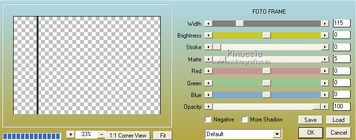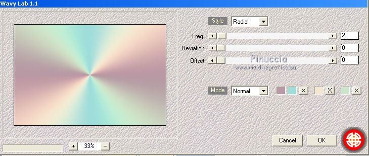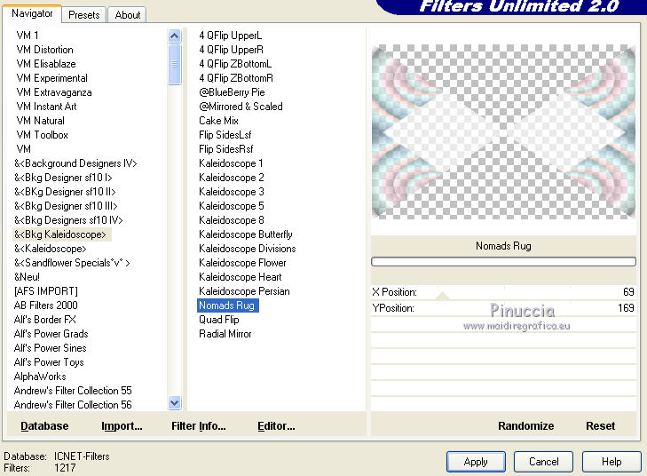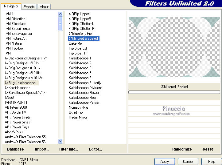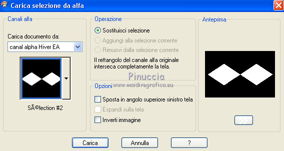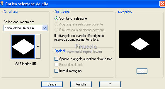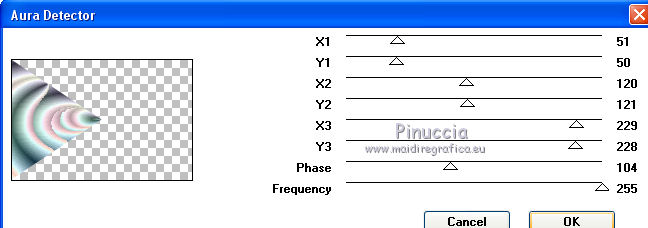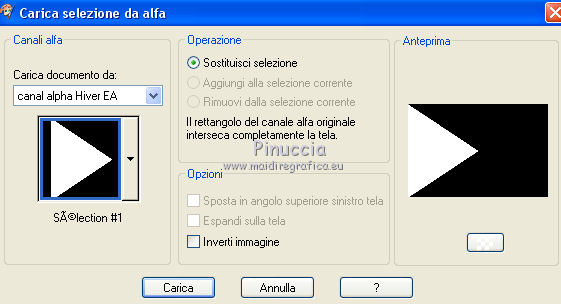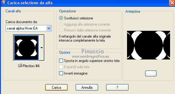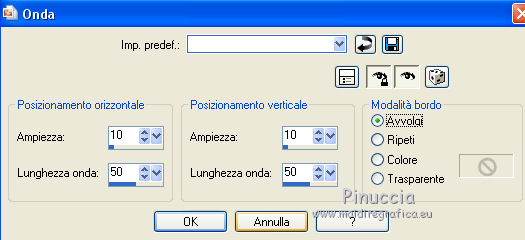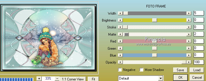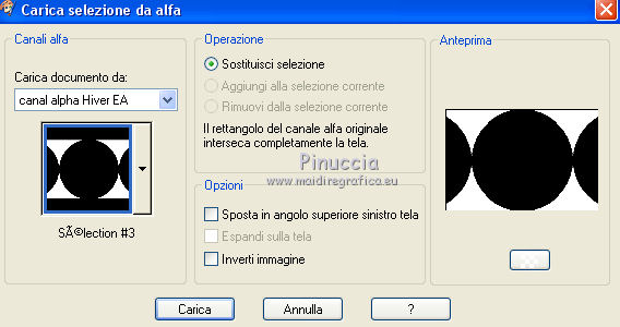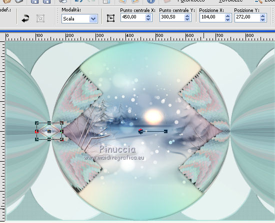qui puoi trovare qualche risposta ai tuoi dubbi. Se l'argomento che ti interessa non è presente, ti prego di segnalarmelo. Questo tutorial è stato realizzato con Corel2020 e tradotto con CorelX7, ma può essere realizzato anche con le altre versioni di PSP. Dalla versione X4, il comando Immagine>Rifletti è stato sostituito con Immagine>Capovolgi in orizzontale, e il comando Immagine>Capovolgi con Immagine>Capovolgi in verticale. Nelle versioni X5 e X6, le funzioni sono state migliorate rendendo disponibile il menu Oggetti. Con la nuova versione X7, sono tornati Rifletti>Capovolgi, ma con nuove varianti. Vedi la scheda sull'argomento qui Occorrente: Materiale qui Grazie per i tubes Malkoffee e Kahlan. Il resto del materiale è di Moi-Même. (in questa pagina trovi i links ai siti dei creatori del materiale) Filtri: se hai problemi con i filtri, consulta la mia sezione filtri qui Filters Unlimited 2.0 qui &<Bkg Kaleidoscope> - Nomad Rugs, Mirrored Scaled (da importare in Unlimited) qui Mehdi - Wavy Lab 1.1 qui VM Extravaganza - Aura Detector qui Textures - Vitrail qui AP [Lines] - Lines SilverLining qui Xero - Porcelain qui Alien Skin Eye Candy 5 Impact - Glass qui AAA Frames - Foto Frame qui I filtri VM Extravaganza si possono usare da soli o importati in Filters Unlimited (come fare vedi qui) Se un filtro fornito appare con questa icona ![]() non esitare a cambiare modalità di miscelatura e opacità secondo i colori utilizzati. Imposta il colore di primo piano con #9fddda, e il colore di sfondo con #b999a3. ![]() 1. Apri canal alpha_Hiver EA. Finestra>Duplica o sulla tastiera maiuscola+D per fare una copia. ![]() Chiudi l'originale. La copia, che sarà la base del tuo lavoro, non è vuota, ma contiene le selezioni salvate sul canale alfa. Effetti>Plugins>Mehdi - Wavy Lab 1.1. questo filtro crea gradienti con i colori della paletta: il primo è il colore di sfondo, il secondo quello di primo piano; cambia gli ultimi due colori creati dal filtro: il terzo con il colore #eee0c8, e il quarto con il colore #cbe6ca. ![]() 2. Selezione>Carica/Salva selezione>Carica selezione da canale alfa. La selezione #1 è subito disponibile. Devi soltanto cliccare Carica ![]() Selezione>Innalza selezione a livello. Selezione>Deseleziona. Effetti>Plugins>VM Extravaganza - Aura Detector, con i settaggi standard. ![]() Effetti>Effetti di riflesso>Specchio rotante. ![]() Effetti>Plugins>Filters Unlimited 2.0 - &<Kaleidoscope> - Nomads Rug, con i settaggi standard. ![]() 3. Selezione>Carica/Salva selezione>Carica selezione da canale alfa. Apri il menu delle selezioni e carica la selezione #2. ![]() Premi sulla tastiera il tasto CANC ![]() Selezione>Deseleziona. Effetti>PluginS>Textures - Vitrail. ![]() Effetti>Effetti geometrici>Cerchio. ![]() Effetti>Effetti 3D>Sfalsa ombra, colore nero. ![]() 4. Selezione>Carica/Salva selezione>Carica selezione da canale alfa. Apri il menu delle selezioni e carica la selezione #3. ![]() Selezione>Innalza selezione a livello. Effetti>Plugins>Filters Unlimited 2.0 - &<Kaleidoscope> - Mirrored Scaled. ![]() Selezione>Deseleziona. 5. Selezione>Carica/Salva selezione>Carica selezione da canale alfa. Apri il menu delle selezioni e carica la selezione #4. ![]() Effetti>Plugins>AP [Lines] - Lines SilverLining. ![]() Selezione>Inverti. Effetti>Plugins>AP [Lines] - Lines SilverLining. ![]() Effetti>Effetti 3D>Smusso a incasso. ![]() Selezione>Deseleziona. 6. Attiva il livello sottostante. Effetti>Plugins>Xero - Porcelain. ![]() 7. Attiva il livello di sfondo. Apri il misted del paesaggio e vai a Modifica>Copia. Torna al tuo lavoro e vai a Modifica>Incolla come nuovo livello. 9. Attiva il livello superiore. Livelli>Nuovo livello raster. Selezione>Carica/Salva selezione>Carica selezione da canale alfa. Apri il menu delle selezioni e carica la selezione #5. ![]() Effetti>Plugins>Mehdi - Wavy Lab 1.1., con i settaggi precedenti. Selezione>Modifica>Contrai - 20 pixels. Modifica>Incolla nella selezione (il misted del paesaggio è sempre in memoria). Effetti>Plugins>Alien Skin Eye Candy 5 Impact - Glass. Seleziona il preset Clear e ok. ![]() Effetti>Plugins>AP [Lines] - Lines SilverLining, con i settaggi precedenti. ![]() Selezione>Deseleziona. Immagine>Ridimensiona, al 20%, tutti i livelli non selezionato. Tasto K per attivare lo strumento Puntatore ![]() e imposta Posizione x: 104,00 e Posizione Y: 272,00. ![]() Tasto M per deselezionare lo strumento. 9. Livelli>Duplica. Immagine>Rifletti. Livelli>Unisci>Unisci giù. Regola>Messa a fuoco>Metti a fuoco. Effetti>Plugins>Alien Skin Eye Candy 5 Impact - Glass, con i settaggi precedenti. Effetti>Effetti 3D>Sfalsa ombra, con i settaggi precedenti. 10. Attiva il livello sottostante. Livelli>Nuovo livello raster. Selezione>Carica/Salva selezione>Carica selezione da canale alfa. Apri il menu delle selezioni e carica la selezione #6. ![]() Riempi la selezione con il colore di primo piano.Selezione>Deseleziona. Effetti>Plugins>AP [Lines] - Lines SilverLining. ![]() Effetti>Plugins>AAA Frames - Foto Frame. ![]() Effetti>Effetti di riflesso>Specchio rotante, con i settaggi precedenti. Effetti>Effetti 3D>Sfalsa ombra, con i settaggi precedenti. Effetti>Effetti di distorsione>Onda. ![]() 11. Apri il tube 2021-09-11 17_51_45-automnecljp47, cancella il watermark e vai a Modifica>Copia. Torna al tuo lavoro e vai a Modifica>Incolla come nuovo livello. Immagine>Ridimensiona, 1 volta al 70% e una volta all'80%, tutti i livelli non selezionato. Posiziona correttamente il tube.Facoltativo: Effetti>Plugins>Xero - Porcelain, con i settaggi precedenti. Effetti>Effetti 3D>Sfalsa ombra, colore nero (o a scelta). ![]() 12. Apri il tube SnowMoi-Même e vai a Modifica>Copia. Torna al tuo lavoro e vai a Modifica>Incolla come nuovo livello. Cambia la modalità di miscelatura di questo livello in Sovrapponi, e abbassa l'opacità al 70%. 13. Livelli>Unisci>Unisci visibile. Modifica>Copia. Immagine>Dimensioni tela - 1000 x 700 pixels. ![]() Attiva lo strumento Bacchetta ma