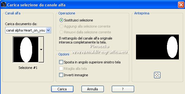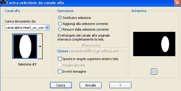 qui puoi trovare qualche risposta ai tuoi dubbi. Se l'argomento che ti interessa non è presente, ti prego di segnalarmelo. Questo tutorial è stato realizzato con PSP Ultimate 2019 e tradotto con PSPX7, ma può essere realizzato anche con le altre versioni di PSP. Dalla versione X4, il comando Immagine>Rifletti è stato sostituito con Immagine>Capovolgi in orizzontale, e il comando Immagine>Capovolgi con Immagine>Capovolgi in verticale. Nelle versioni X5 e X6, le funzioni sono state migliorate rendendo disponibile il menu Oggetti. Con la nuova versione X7, sono tornati Rifletti>Capovolgi, ma con nuove varianti. Vedi la scheda sull'argomento qui English Translation qui/here![]() Occorrente: ![]() Deco realizzato a partire da una maschera di Narah. Autore del testo Louise Ackerman. Il resto del materiale è di Moi-Même. (in questa pagina trovi i links ai siti dei creatori del materiale) ![]() se hai problemi con i filtri, consulta la mia sezione filtri qui Mehdi - Wavy Lab 1.1. qui Alien Skin Eye Candy 5 Impact - Glass qui Carolaine and Sensibility - CS-LDots qui ![]() non esitare a cambiare modalità di miscelatura e opacità secondo i colori utilizzati. ![]() Se hai problemi con il canale alfa, apri una nuova immagine trasparente 950 x 550 pixels, e usa la selezioni da disco. Imposta il colore di primo piano con #ee0400, e il colore di sfondo con #6d767c. ![]() 1. Apri canal alpha_Heart_on_you Questa immagine, che sarà la base del tuo lavoro, non è vuota, ma contiene le selezioni salvate sul canale alfa. Effetti>Plugins>Mehdi - Wavy Lab 1.1. Questo filtro crea gradienti con i colori della paletta: il primo è il colore di sfondo, il secondo quello di primo piano. Cambia gli ultimi due colori creati dal filtro: il terzo con #ffb5ba e il quarto con #e8ebee. ![]() Regola>Sfocatura>Sfocatura gaussiana - raggio 50. ![]() 2. Apri déco masque_Narah ![]() Modifica>Copia. Torna al tuo lavoro e vai a Modifica>Incolla come nuovo livello. Sposta il tube a sinistra: Oggetti>Allinea>Sinistra.o tasto K per attivare lo strumento Puntatore ![]() e imposta Posizione X e Y a 0,00. ![]() ![]() Tasto M per deselezionare lo strumento. Cambia la modalità di miscelatura di questo livello in Filtra. Livelli>Duplica. Immagine>Rifletti. Livelli>Unisci>Unisci giù. 3. Attiva il livello sottostante, Raster 1. Apri fond texte ![]() Modifica>Copia. Torna al tuo lavoro e vai a Modifica>Incolla come nuovo livello. Lascialo come sta. 4. Apri texte_auteur_Louise Ackermann ![]() Modifica>Copia. Torna al tuo lavoro e vai a Modifica>Incolla come nuovo livello. Lascialo come sta. ![]() Cambia la modalità di miscelatura di questo livello in Luminanza (esistente), e abbassa l'opacità al 70%. 5. Apri déco 2 ![]() Cancella il watermark e vai a Modifica>Copia. Torna al tuo lavoro e vai a Modifica>Incolla come nuovo livello. Tasto K per attivare lo strumento Puntatore ![]() e imposta Posizione X: 214,00 e Posizione Y: 0,00. ![]() 6. Attiva il livello superiore. Apri déco 3 ![]() Modifica>Copia. Torna al tuo lavoro e vai a Modifica>Incolla come nuovo livello. Imposta Posizione X: 230,00 e Posizione Y: 8,00. ![]() Tasto M per deselezionare lo strumento. 7. Livelli>Nuovo livello raster. Selezione>Carica/Salva selezione>Carica selezione da canale alfa. La selezione sélection #1 è subito disponibile. Devi soltanto cliccare Carica. ![]() Effetti>Plugins>Mehdi - Wavy Lab 1.1., con i settaggi precedenti. ![]() Regola>Sfocatura>Sfocatura gaussiana, con i settaggi precedenti. Effetti>Plugins>Carolaine and Sensibility - CS-LDots. ![]() 8. Livelli>Nuovo livello raster. Apri il tube della donna ![]() Cancella il watermark e vai a Modifica>Copia. Torna al tuo lavoro e vai a Modifica>Incolla nella selezione. Livelli>Nuovo livello raster. Effetti>Plugins>Alien Skin Eye Candy 5 Impact - Glass. Seleziona il preset Clear e ok. (se non puoi utilizzare questo filtro: copia/incolla nella selezione déco glass che trovi nel materiale. Lo stesso per i due passaggi seguenti) Livelli>Unisci>Unisci giù - 2 volte. Nota: la prossima selezione sostituirà la precedente, se necessario, puoi deselezionare ogni volta. Opzionale, secondo il tube: Carica la selezione #4, e premi due volte sulla tastiera il tasto CANC ![]() Mantieni selezionato. 9. Attiva il livello sottostante. Di nuovo, premi due volte sulla tastiera il tasto CANC. Selezione>Deseleziona. Livelli>Nuovo livello raster. Selezione>Carica/Salva selezione>Carica selezione da canale alfa. Apri il menu delle selezioni e carica la selezione sélection #2 ![]() Effetti>Plugins>Mehdi - Wavy Lab 1.1., con i settaggi precedenti. Regola>Sfocatura>Sfocatura gaussiana, con i settaggi precedenti. Effetti>Plugins>Carolaine and Sensibility - CS-LDots. Effetti>Plugins>Alien Skin Eye Candy 5 Impact - Glass - Clear. (o incolla nella selezione déco glass). 10. Livelli>Nuovo livello raster. Selezione>Carica/Salva selezione>Carica selezione da canale alfa. Apri il menu delle selezioni e carica la selezione sélection #3 ![]() Effetti>Plugins>Mehdi - Wavy Lab 1.1., con i settaggi precedenti. Regola>Sfocatura>Sfocatura gaussiana, con i settaggi precedenti. Effetti>Plugins>Carolaine and Sensibility - CS-LDots. Mantieni selezionato. 11. Apri il misted 77110e07 ![]() Modifica>Copia. Torna al tuo lavoro e vai a Modifica>Incolla nella selezione. Effetti>Plugins>Alien Skin Eye Candy 5 Impact - Glass - Clear. (o incolla nella selezione déco glass). Selezione>Deseleziona. Livelli>Disponi>Sposta su. 12. Rimani sul livello superiore. Apri déco 1 ![]() Cancella il watermark e vai a Modifica>Copia. Torna al tuo lavoro e vai a Modifica>Incolla come nuovo livello. Tasto K per attivare lo strumento Puntatore ![]() e imposta Posizione X: 718,00 e Posizione Y: 0,00. ![]() Tasto M per deselezionare lo strumento. 13. Attiva il livello inferiore, Raster 1. Modifica>Copia 14. Immagine>Aggiungi bordatura, 1 pixel, simmetriche, colore di sfondo. Immagine>Aggiungi bordatura, 1 pixel, simmetriche, colore di primo piano. Immagine>Aggi