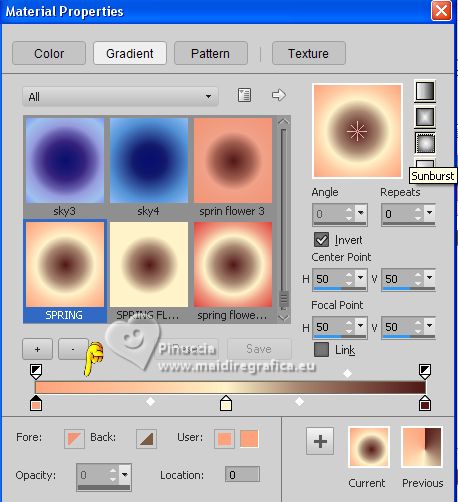 Set your foreground color to Gradient and select the gradient springflower original, style Sunburst.