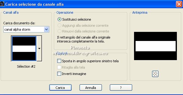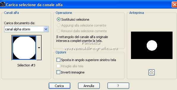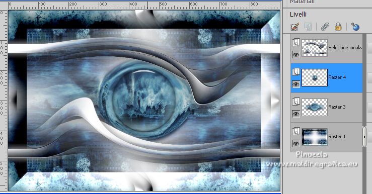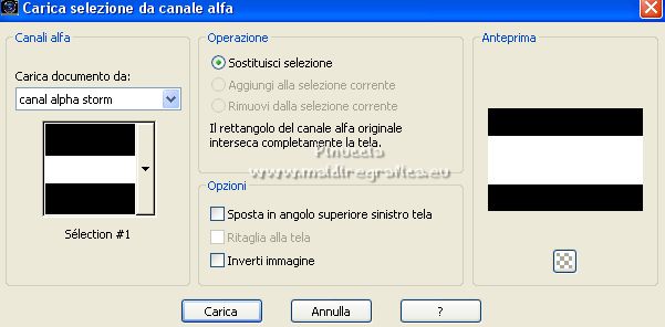 qui puoi trovare qualche risposta ai tuoi dubbi. Se l'argomento che ti interessa non è presente, ti prego di segnalarmelo. Questo tutorial è stato realizzato con Corel2020 e tradotto con CorelX, ma può essere realizzato anche con le altre versioni di PSP. Dalla versione X4, il comando Immagine>Rifletti è stato sostituito con Immagine>Capovolgi in orizzontale, e il comando Immagine>Capovolgi con Immagine>Capovolgi in verticale. Nelle versioni X5 e X6, le funzioni sono state migliorate rendendo disponibile il menu Oggetti. Con la nuova versione X7, sono tornati Rifletti>Capovolgi, ma con nuove varianti. Vedi la scheda sull'argomento qui English Translation qui/here Le vostre versioni qui/hereOccorrente: Materiale qui Per il tube grazie Tineke. Il resto del materiale è di Moi-Même. (in questa pagina trovi i links ai siti dei creatori del materiale) Filtri: se hai problemi con i filtri, consulta la mia sezione filtri qui Filters Unlimited 2.0 qui &<Bkg Kaleidoscope> - Kaleidoscope Persian (da importare in Unlimited) qui Alf's border FX - Mirror Bevel qui I filtri Alf's Border FX si possono usare da soli o importati in Filters Unlimited (come fare vedi qui) Se un filtro fornito appare con questa icona ![]() non esitare a cambiare modalità di miscelatura e opacità secondo i colori utilizzati. Metti il pennello nella cartella Pennelli. Il pennello fornito è orfano e non ha funzionato nelle mie versioni di PSP. Se anche tu hai problemi con il pennello, nel materiale ho aggiunto un'altra versione del pennello. Attenzione, il pennello è composto da due files che non devono essere separati. Vedi gli appunti sui Pennelli qui Imposta il colore di primo piano con #cbdfe0, e il colore di sfondo con #1c2c45. ![]() 1. Apri Canal Alpha Storm. Finestra>Duplica o sulla tastiera maiuscola+D per fare una copia. ![]() Chiudi l'originale. La copia, che sarà la base del tuo lavoro, non é vuota, ma contiene le selezioni salvate sul canale alfa. Riempi l'immagine trasparente con il colore di primo piano.Selezione>Seleziona tutto. Livelli>Nuovo livello raster. Apri il misted storm e vai a Modifica>Copia. Torna al tuo lavoro e vai a Modifica>Incolla nella selezione. Selezione>Deseleziona. Livelli>Duplica. Livelli>Unisci>Unisci giù - 2 volte. Effetti>Plugins>Filters Unlimited 2.0 - &<Bkg Kaleidoscope> - Kaleidoscope Persian, con i settaggi standard. ![]() Effetti>Plugins>Filters Unlimited 2.0 - Buttons & Frames - 3D Glass Frame 3. ![]() 2. Selezione>Carica/Salva selezione>Carica selezione da canale alfa. La selezione #1 é subito disponibile. Devi soltanto cliccare Carica. ![]() Selezione>Innalza selezione a livello. Effetti>Plugins>Filters Unlimited 2.0 - Buttons & Frames - Glass Frame 3, con i settaggi precedenti. ![]() 3. (la prossima selezione sostituirà quella esistente, se non è così per te, deseleziona prima di continuare). Selezione>Carica/Salva selezione>Carica selezione da canale alfa. Apri il menu delle selezioni e carica la selezione #2. ![]() Come scritto prima, la nuova selezione ha sostituito la precedente. ![]() Premi sulla tastiera il tasto CANC ![]() Selezione>Deseleziona. Effetti>Effetti di immagine>Motivo unico, con i settaggi standard. ![]() Effetti>Effetti di distorsione>Mulinello. ![]() Regola>Messa a fuoco>Metti a fuoco. Effetti>Effetti 3D>Sfalsa ombra, colore bianco. ![]() Di nuovo Effetti>Effetti 3D>Sfalsa ombra, colore nero. ![]() 4. Livelli>Duplica. Effetti>Effetti di distorsione>Mulinello, con i settaggi precedenti. Livelli>Unisci>Unisci giù. 5. Livelli>Nuovo livello raster. Selezione>Carica/Salva selezione>Carica selezione da canale alfa. Apri il menu delle selezioni e carica nuovamente la selezione #2. ![]() Modifica>Incolla nella selezione (il misted del paesaggio è ancora in memoria). Livelli>Disponi>Sposta giù. Selezione>Deseleziona. Regola>Messa a fuoco>Metti a fuoco. Effetti>Effetti di distorsione>Distorsione. ![]() 6. Livelli>Nuovo livello raster. Selezione>Carica/Salva selezione>Carica selezione da canale alfa. Apri il menu delle selezioni e carica la selezione #3. ![]() Modifica>Incolla nella selezione. (il misted è sempre in memoria). Regola>Messa a fuoco>Metti a fuoco. Apri déco glass, e vai a Modifica>Copia. Torna al tuo lavoro e vai a Modifica>Incolla nella selezione. Selezione>Deseleziona. ![]() 7. Livelli>Duplica. Immagine>Ridimensiona, al 60%, tutti i livelli non selezionato. Effetti>Effetti 3D>Sfalsa ombra, colore nero. ![]() 8. Attiva il livello di sfondo, Raster 1. Apri déco Lightning, e vai a Modifica>Copia. Torna al tuo lavoro e vai a Modifica>Incolla come nuovo livello. 9. Attiva il livello superiore (Selezione innalzata). Livelli>Nuovo livello raster. Imposta il colore di primo piano con il colore bianco. Attiva lo strumento Pennello ![]() cerca e seleziona il pennello tornade, dimensione 400 pixels. ![]() Applica il pennello cliccando con il tasto sinistro del mouse, per usare il colore bianco di primo piano. Tasto K sulla tastiera per attivare lo strumento Puntatore ![]() e imposta Posizione X: 674,00 e Posizione Y: 112,00. ![]() Tasto M per deselezionare lo strumento. 10. Imposta nuovamente il colore di primo piano con il colore iniziale #cbdfe0. ![]() Immagine>Aggiungi bordatura, 1 pixel, simmetriche, colore di sfondo. Immagine>Aggiungi bordatura, 5 pixels, simmetriche, colore di primo piano. Immagine>Aggiungi bordatura, 1 pixel, simmetriche, colore di sfondo. Selezione>Seleziona tutto. Immagine>Aggiungi bordatura, 50 pixels, simmetriche, colore di primo piano. Selezione>Inverti. Effetti>Plugins>Filters Unlimited 2.0 - Alf's border FX - Mirror Bevel, con i settaggi standard. ![]() Selezione>Inverti. Effetti>Effetti 3D>Sfalsa ombra, colore nero. ![]() Selezione>Deseleziona. 11. Apri il tube della donna e vai a Modifica>Copia. Torna al tuo lavoro e vai a Modifica>Incolla come nuovo livello. Sposta il tube come preferisci, o vedi il mio esempio.Effetti>Effetti 3D>Sfalsa ombra, colore nero. ![]() (o a tua scelta) 12. Apri il testo, e vai a Mod