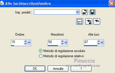 25. Regola>Luminosità e contrasto>Alte luci/mezzitoni/ombre.