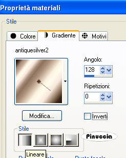 Seleziona il gradiente antiquesilver2, con i seguenti settaggi: