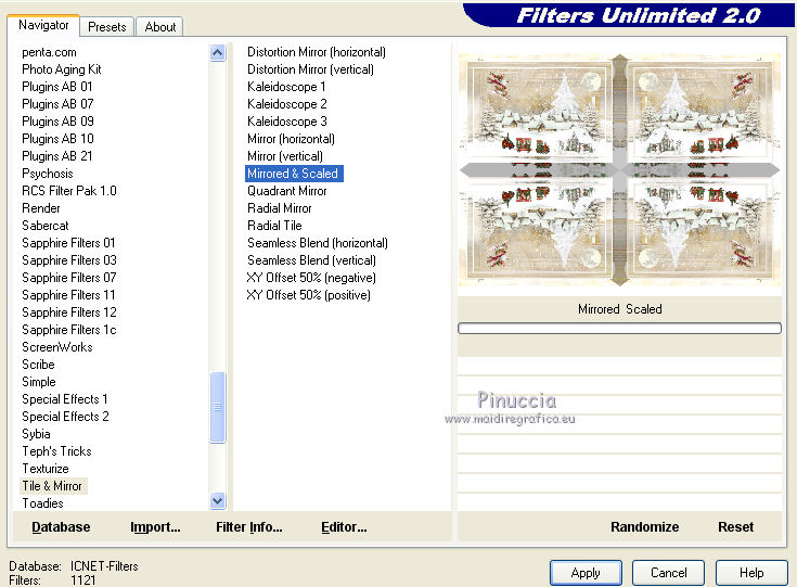 Effects>Plugins>Filters Unlimited 2.0 - Tile & Mirror - Mirrored & Scaled.
