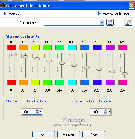 10. Réglage>Teinte et Saturation>Glissement de la teinte.