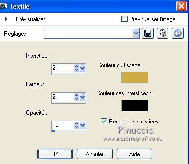 couleur du tissage: #d1ac44; couleur des interstices: noir.